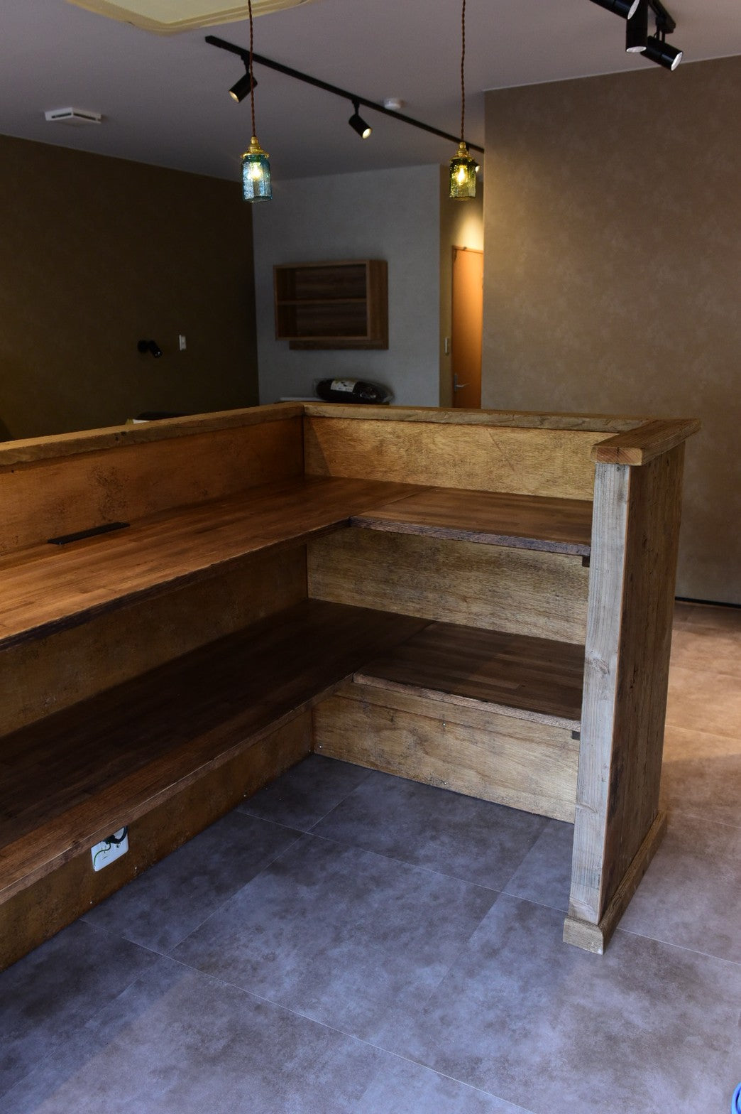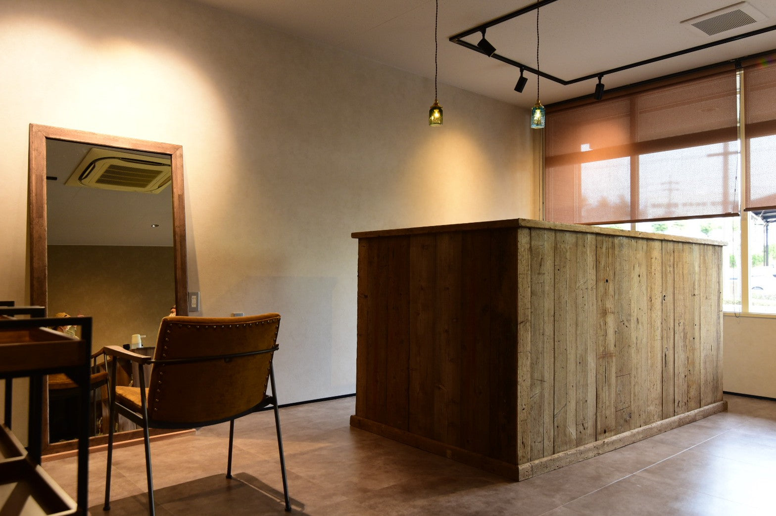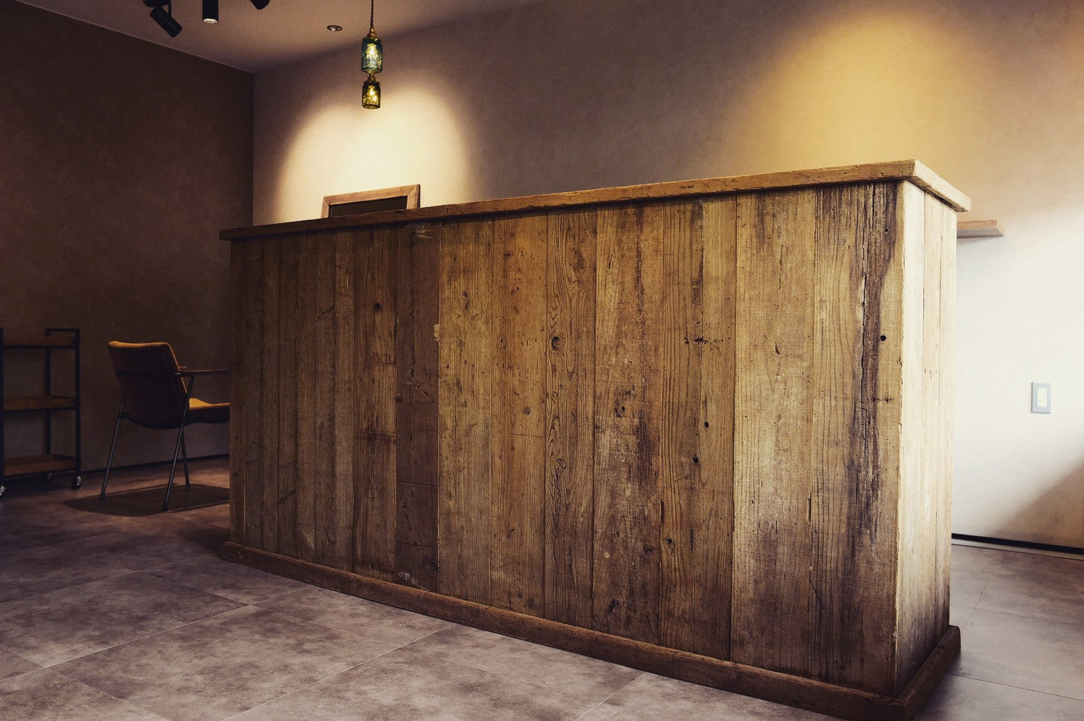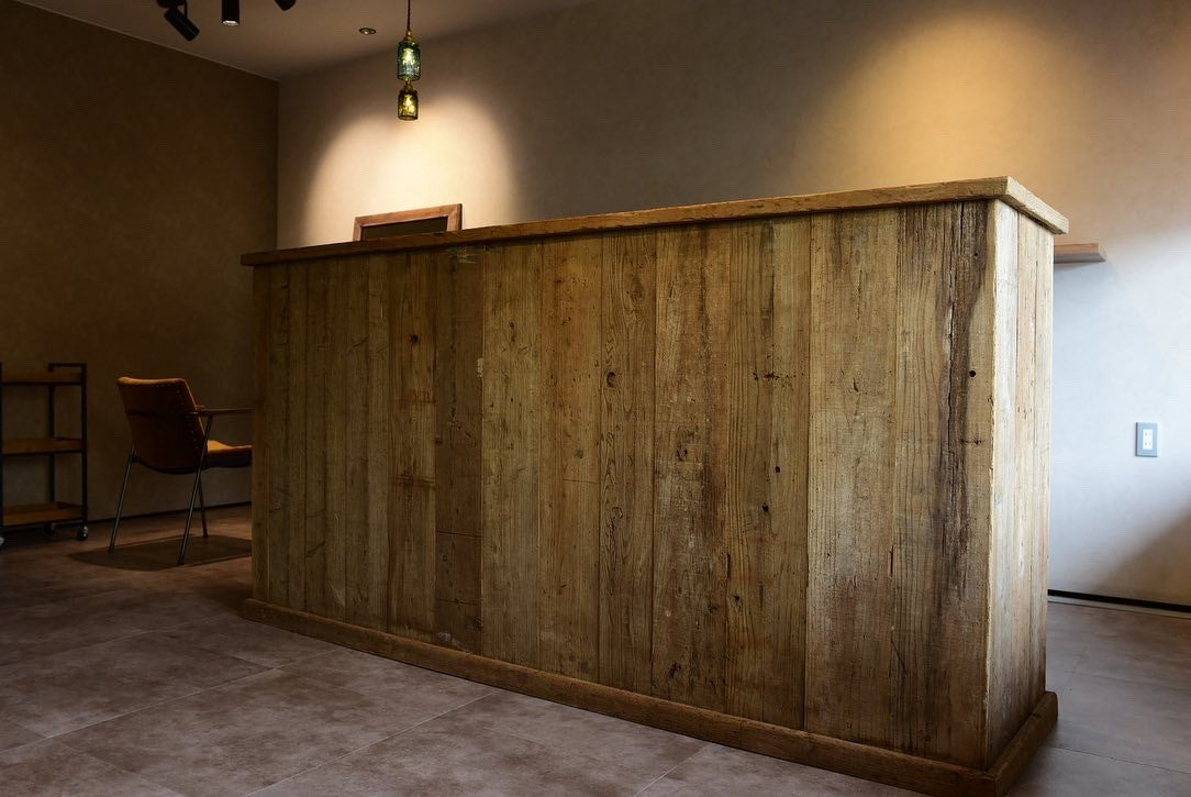 古材をふんだんにあしらったカウンターです。
