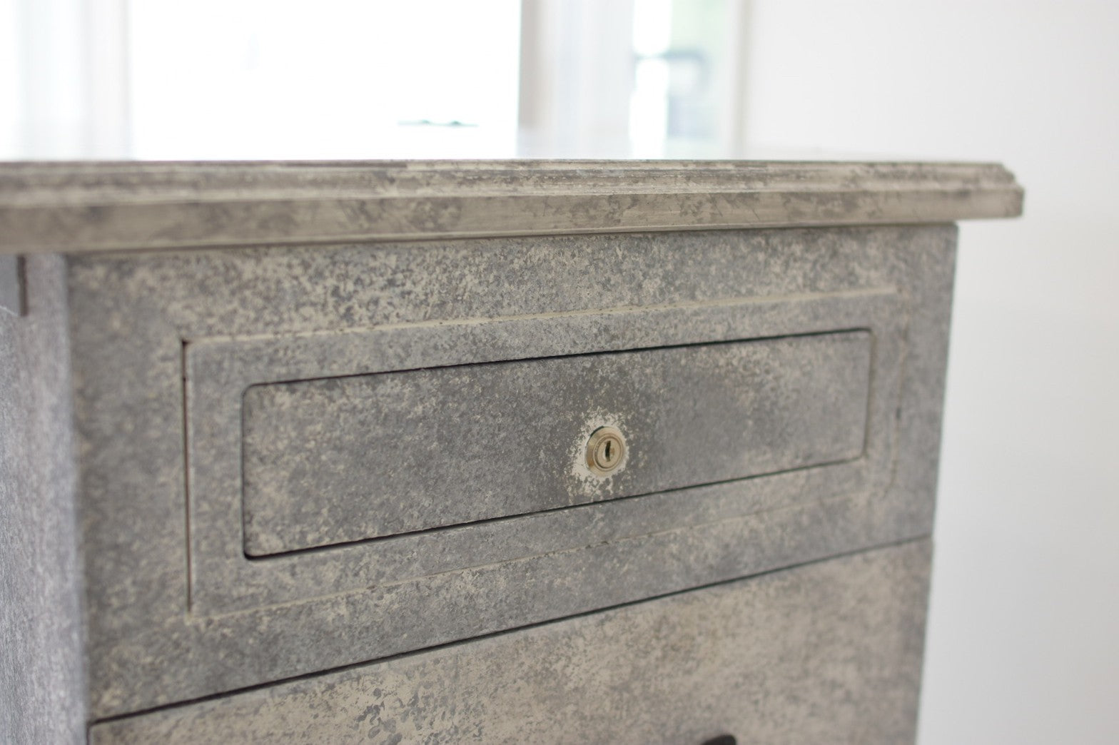 お客様側に、天板から前に延長するかたちで、出っ張らせた緑青の鉄板は、