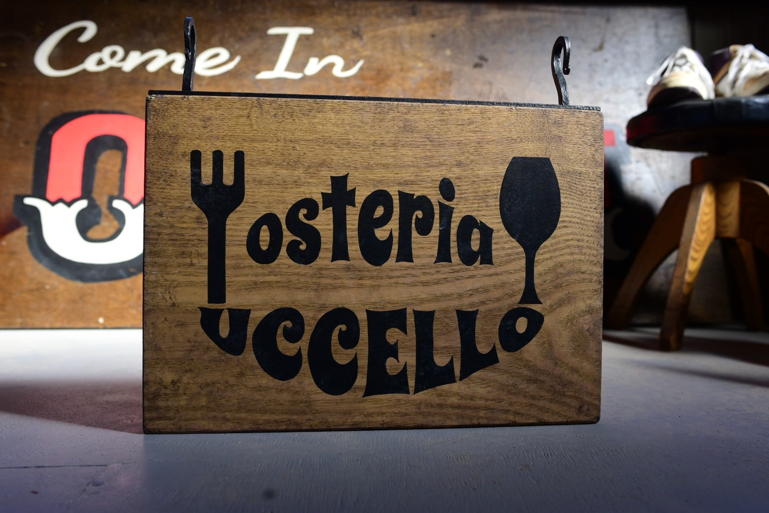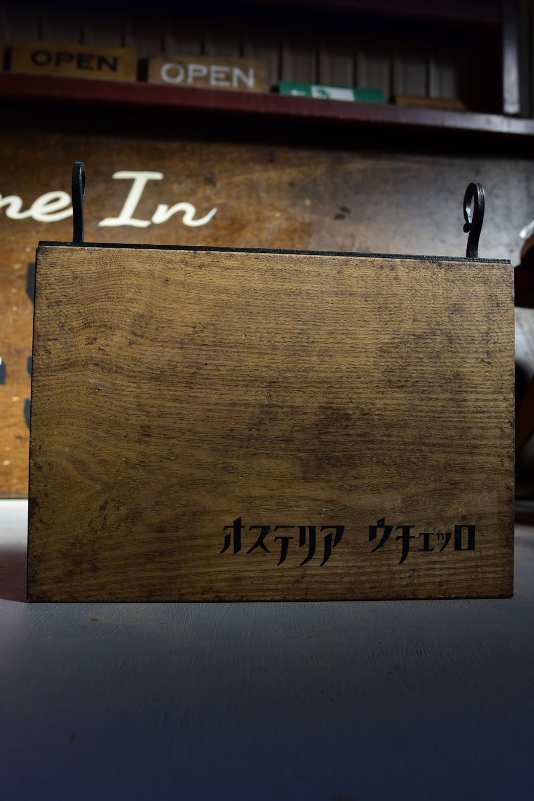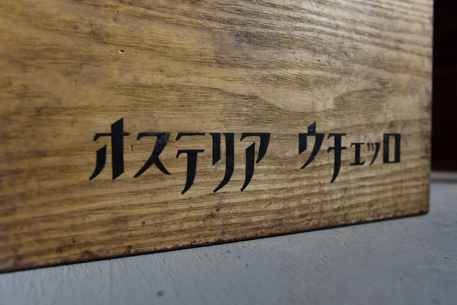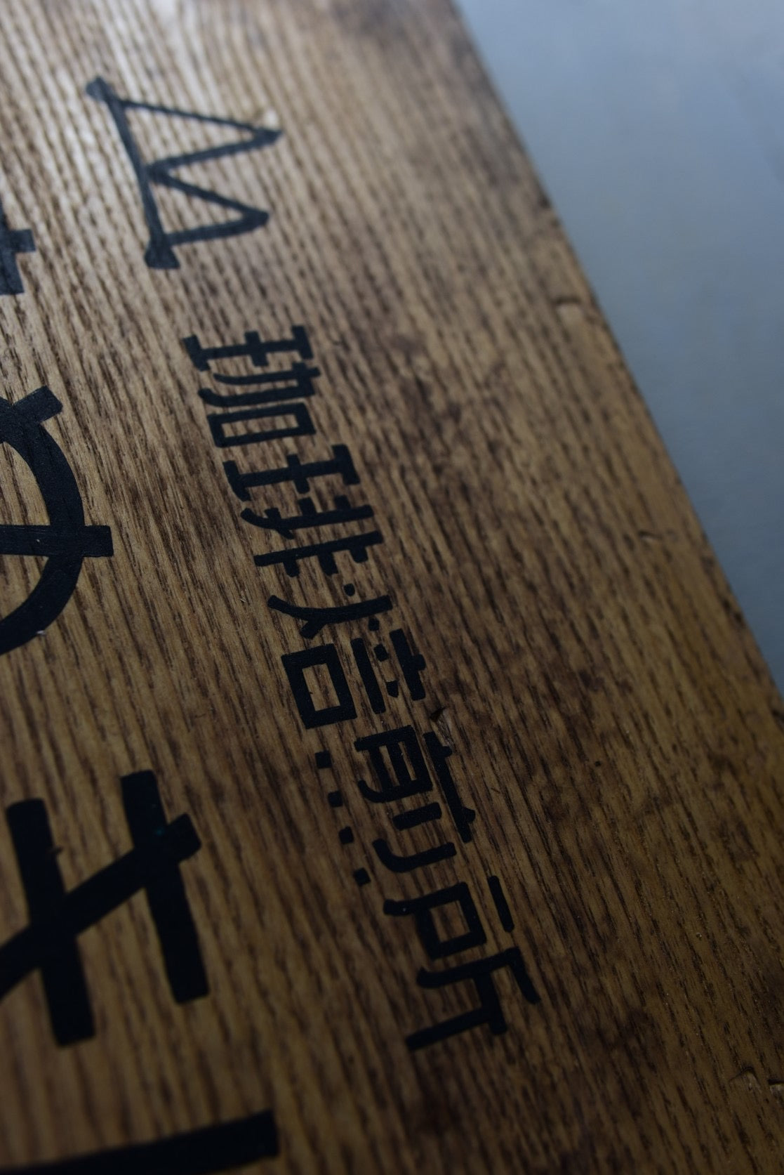 あらかじめエイジング塗装を施しておくことで、経年を軽く経たような雰囲気に仕上げています。周囲の環境に馴染ませたいときにとてもいいです。文字はすべて水性の筆書きのため、上質な艶消しの文字と手書きのAjiが、カッティングシートには無い、人の体温に触れた時のような安心感を与えてくれます。