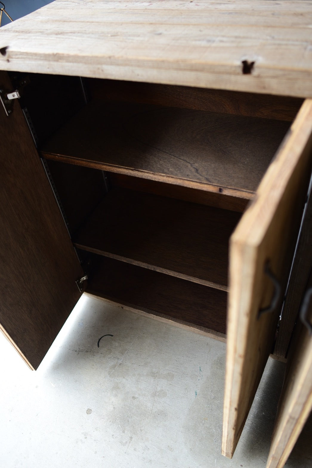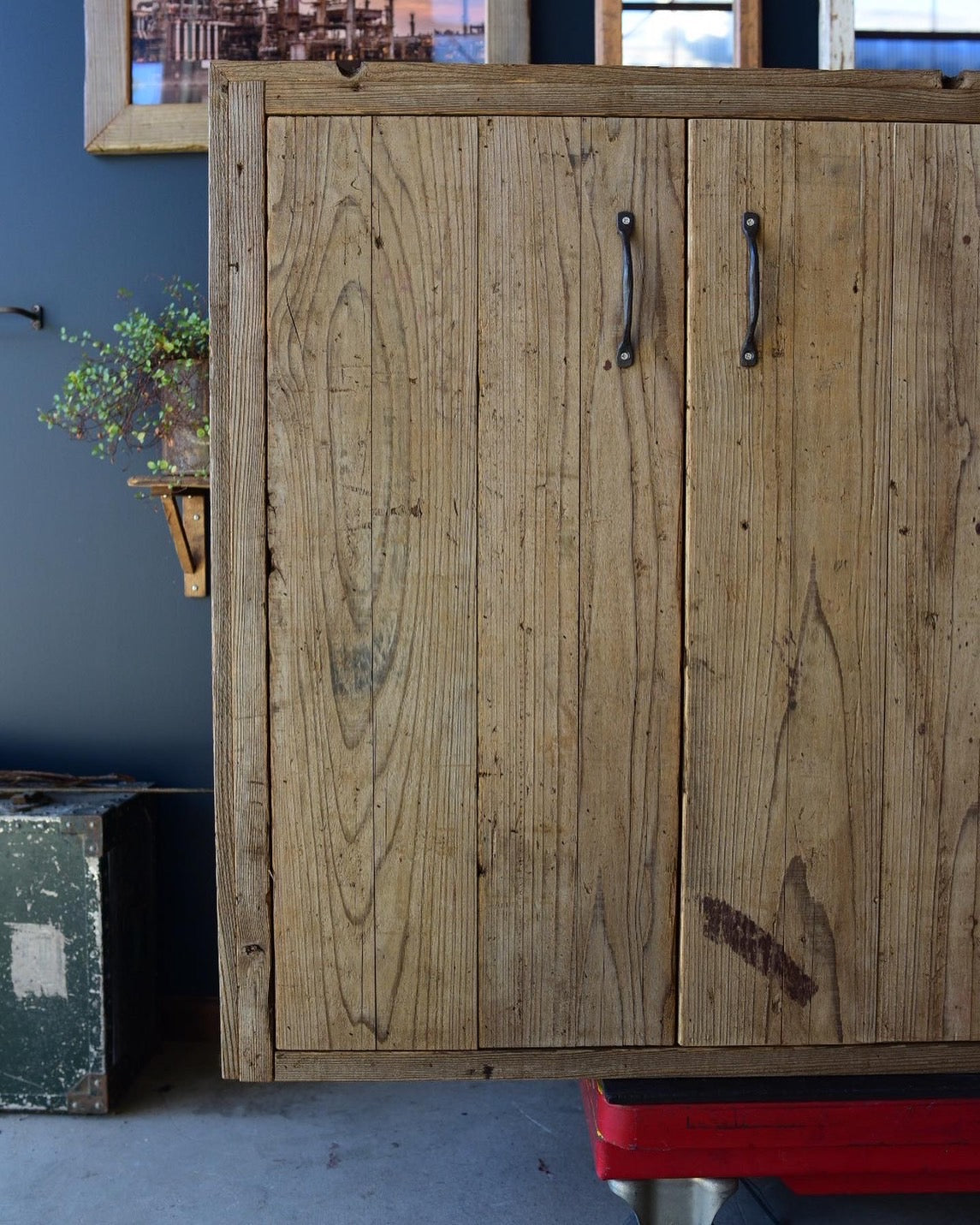 基本、扉を閉めた状態で見える箇所は全て古材の面となるよう、