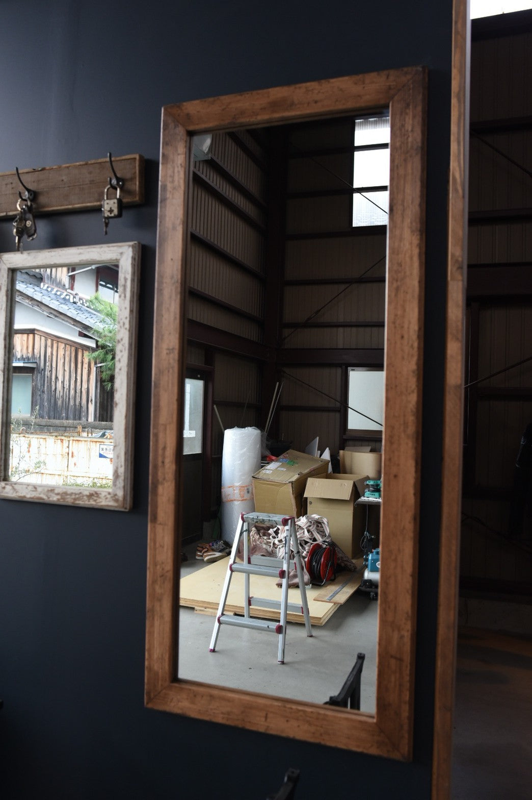 大人気のエイジング塗装ミラーの壁掛けタイプの姿見です。