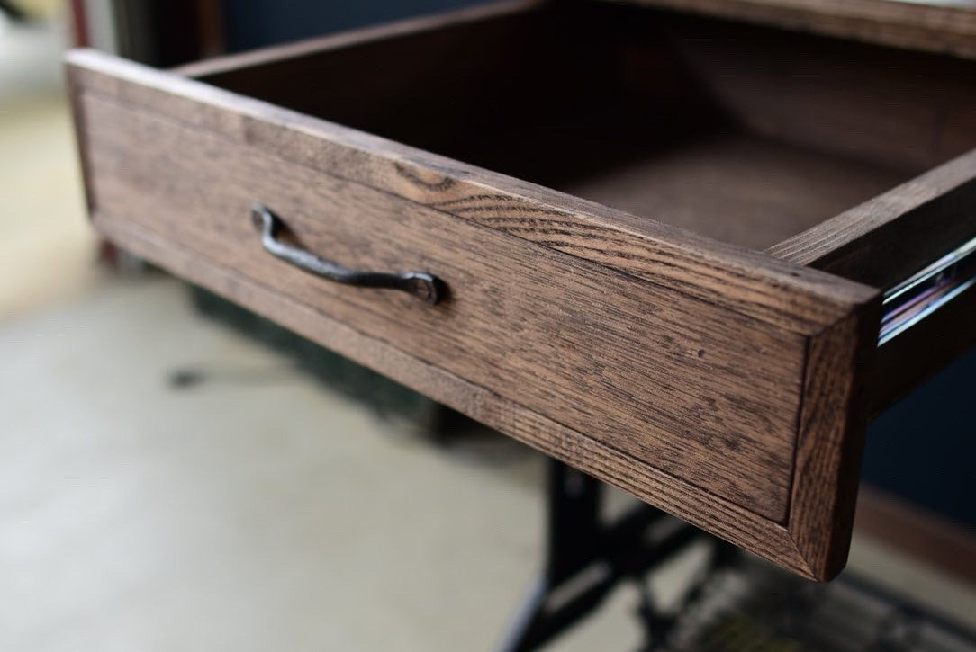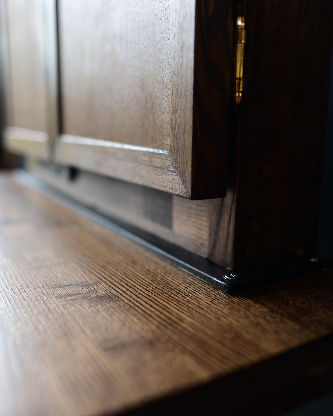 ①天板  タモ材・・・とても硬くてタフ、それでいて、木目が美しい樹種