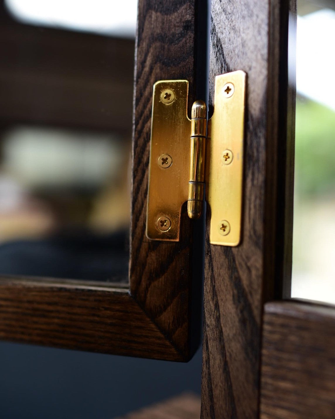 ③丁番 真鍮・・・メッキや塗装ではなく、真鍮の素材としてのゴールドはうっとりする輝きです。