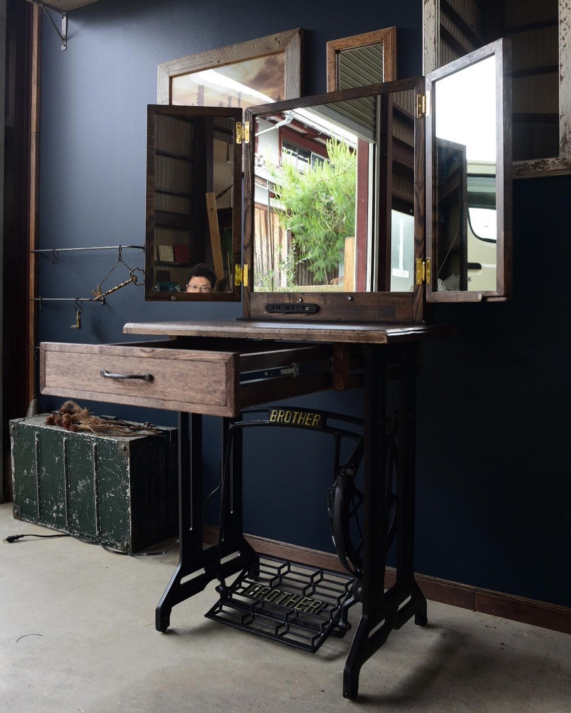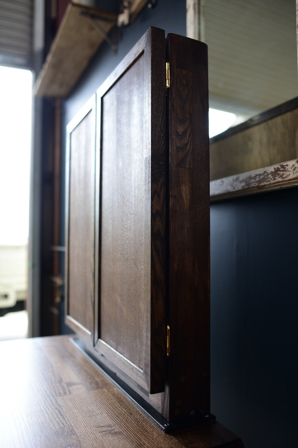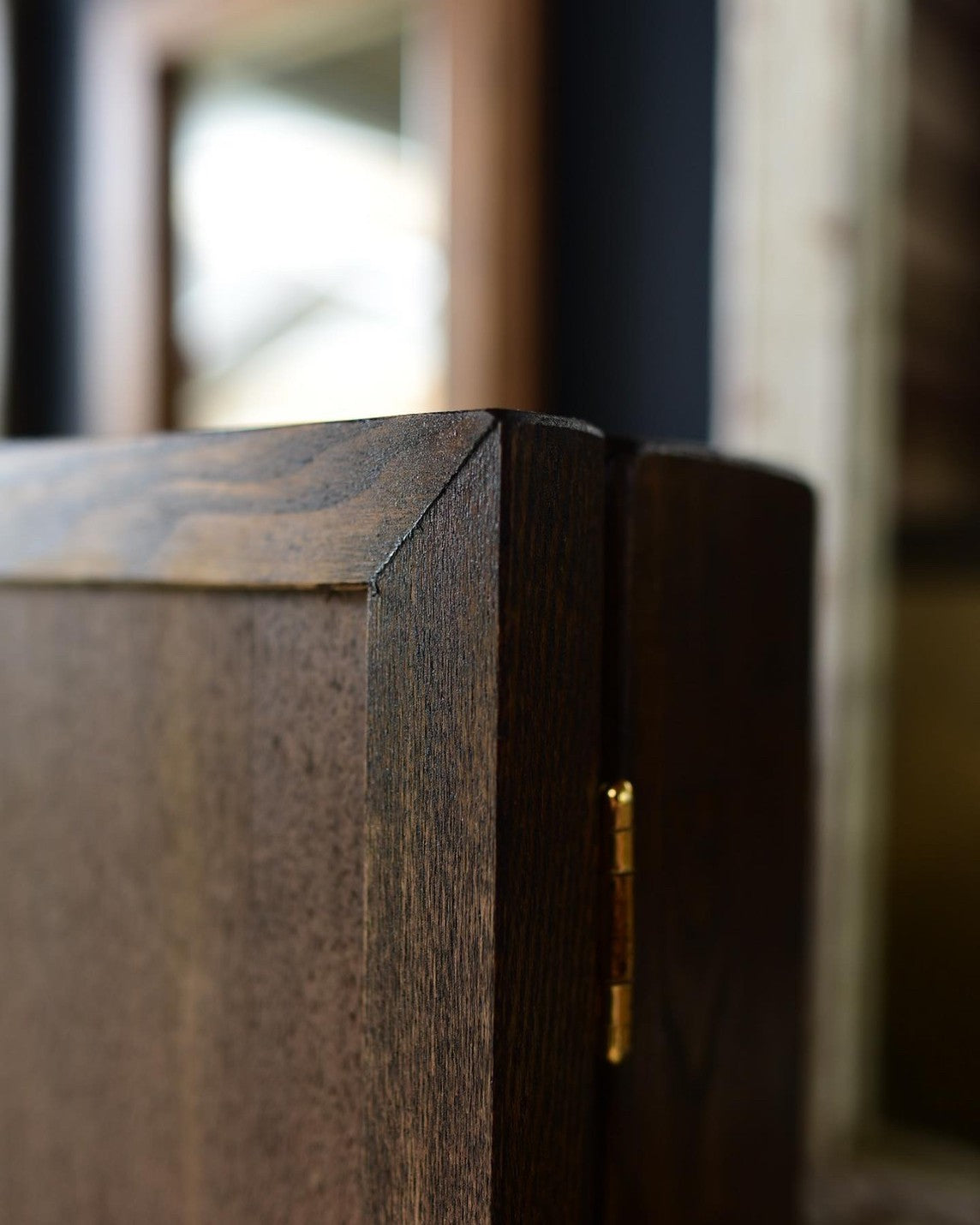 ②三面鏡枠 枠材タモ材、板面は突板・・・木目を薄くスライスしたもの。美しい木目の高級感が出せます。
