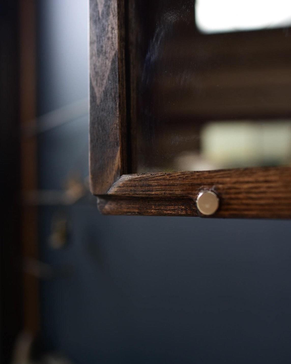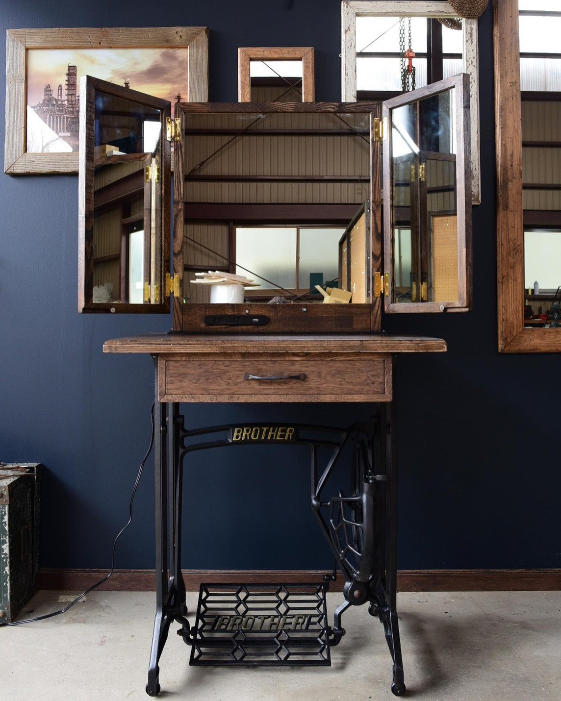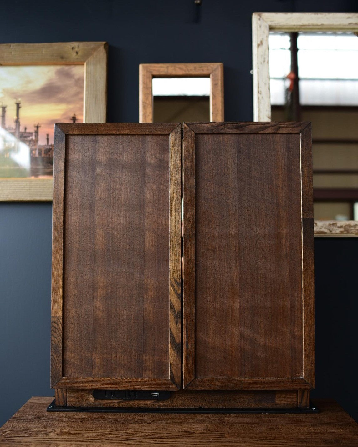 ②三面鏡枠 枠材タモ材、板面は突板・・・木目を薄くスライスしたもの。美しい木目の高級感が出せます。