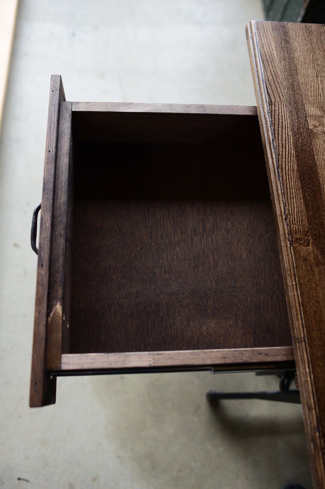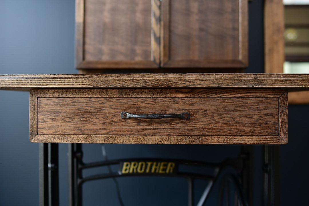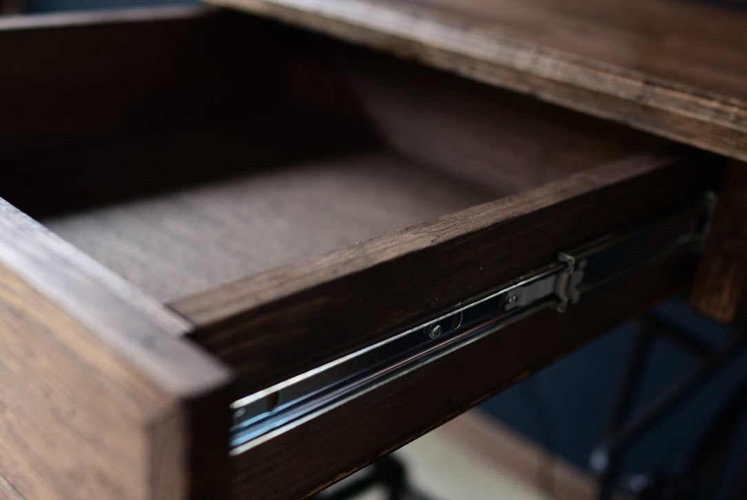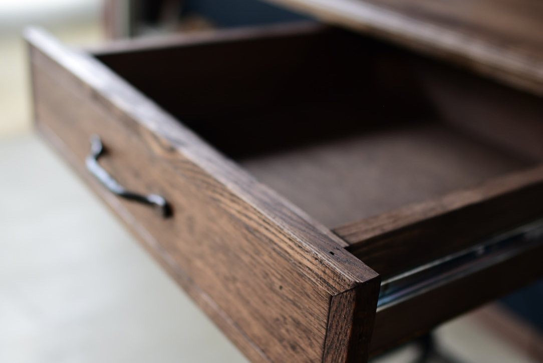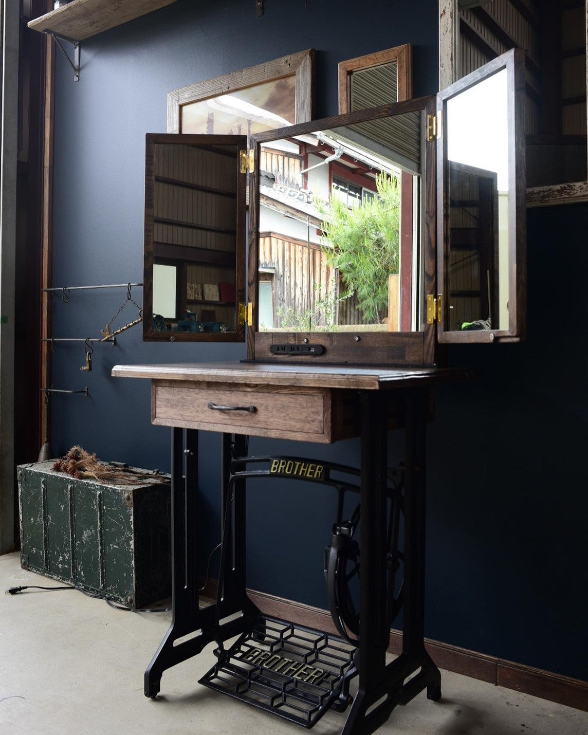 ①ドレッサーというと、何段もの引出しがあったりするものですが、余計に設備を増やしてしまわず、引き出しは1杯のみとし、極シンプルに仕上げています。
