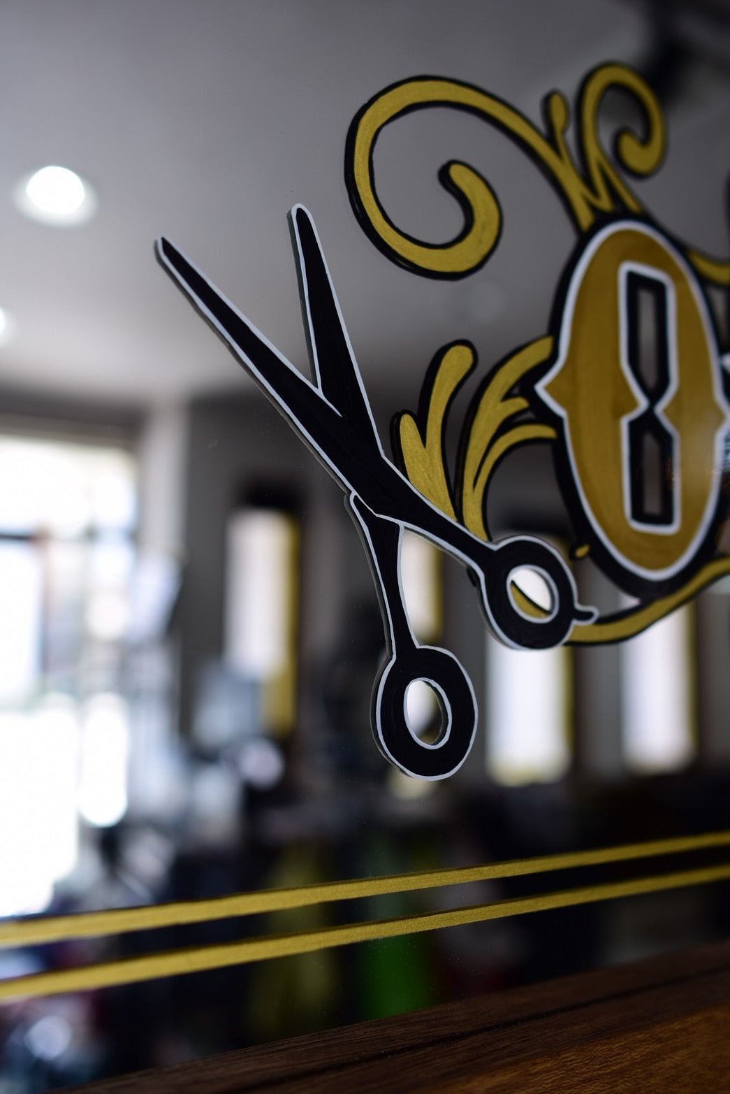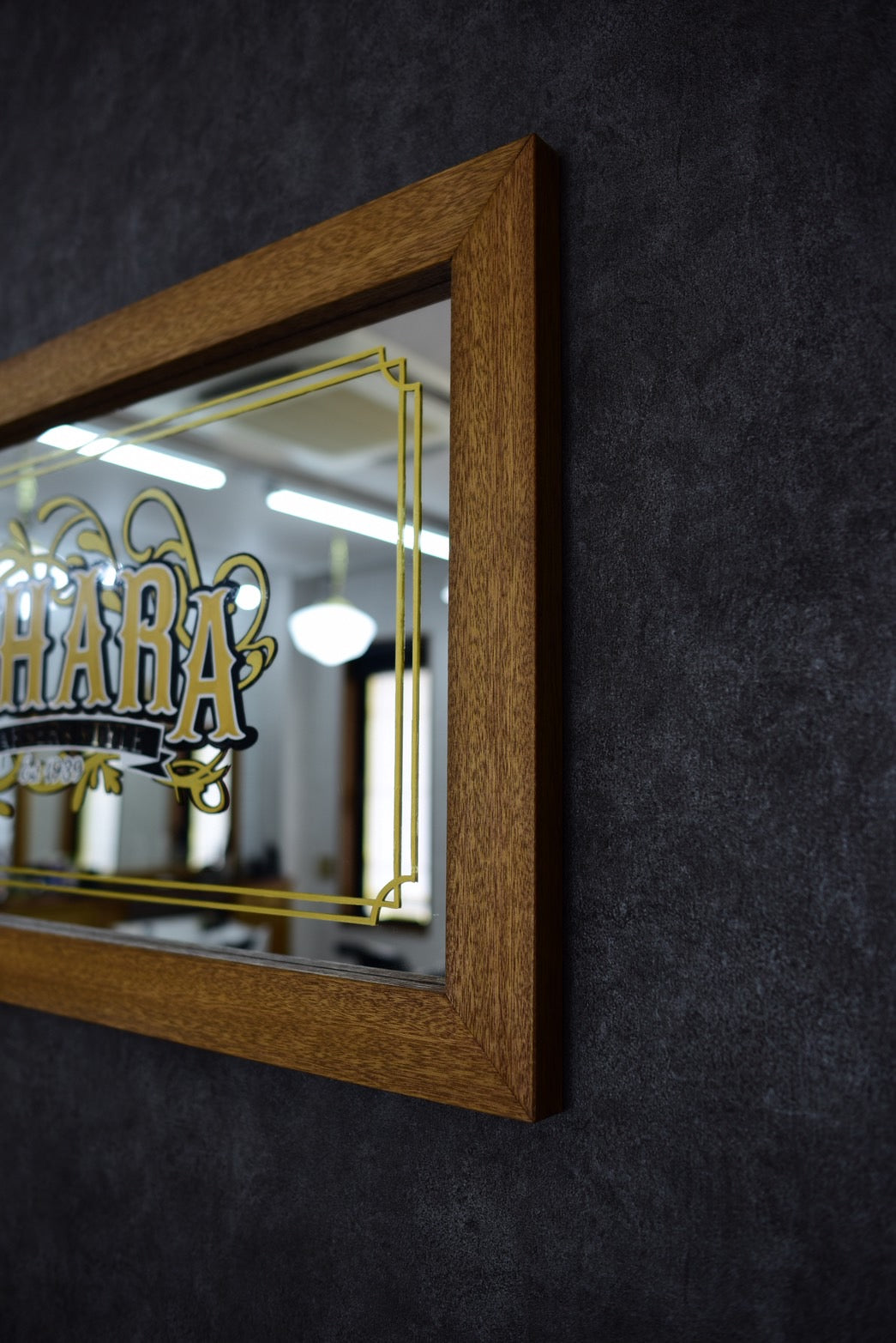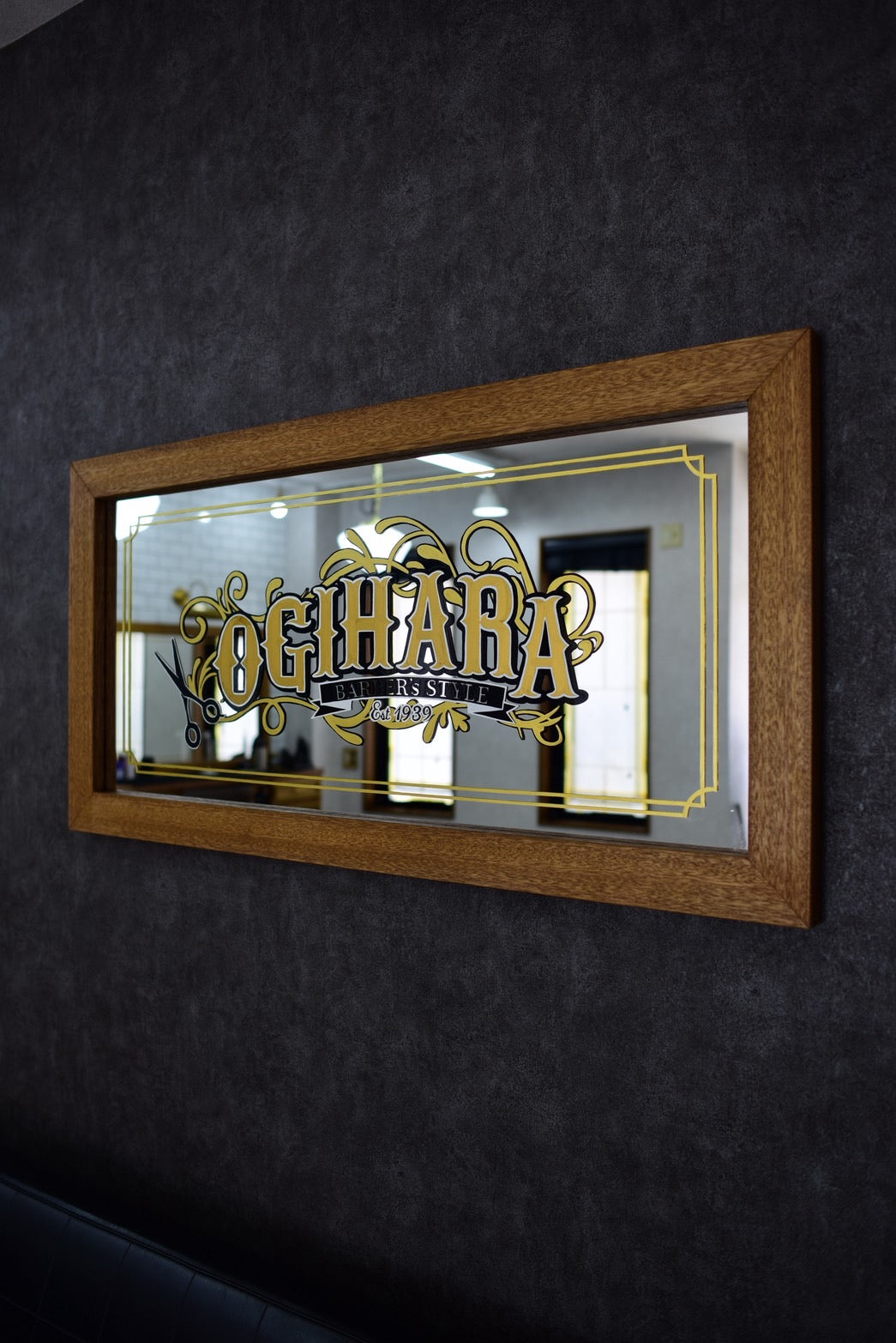 あるBarBer店オーナーとアトリエでお話ししていた際に、当工房のロゴを、半分遊びで描いて製作していたパブミラーを見られたオーナーが、