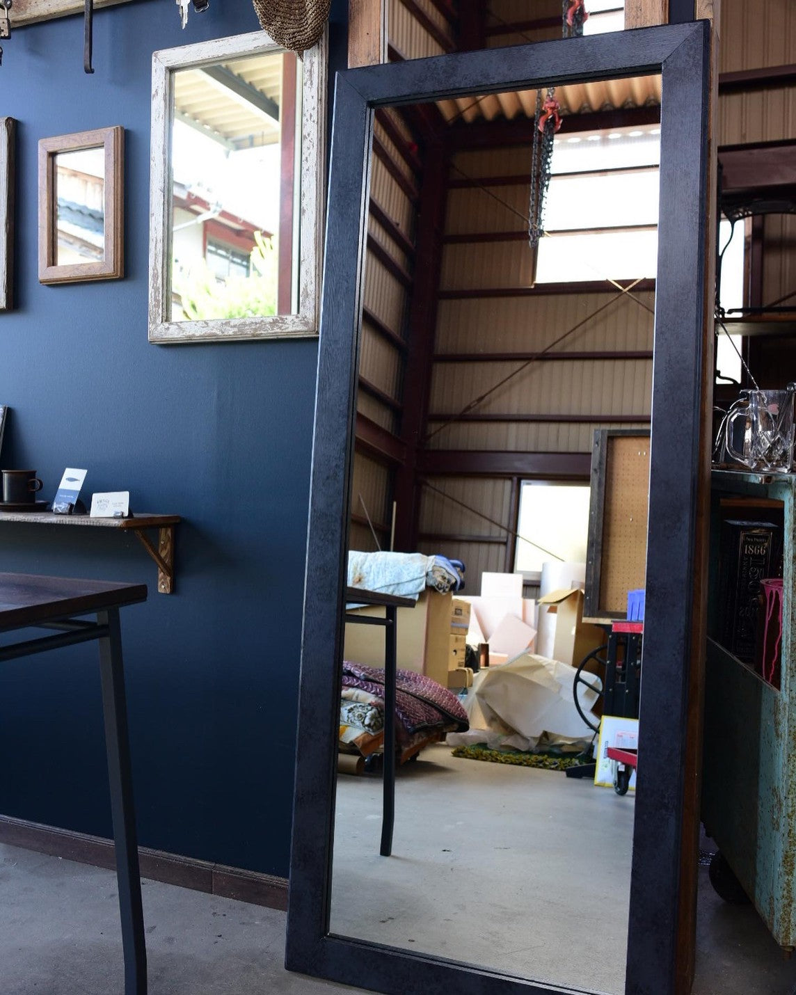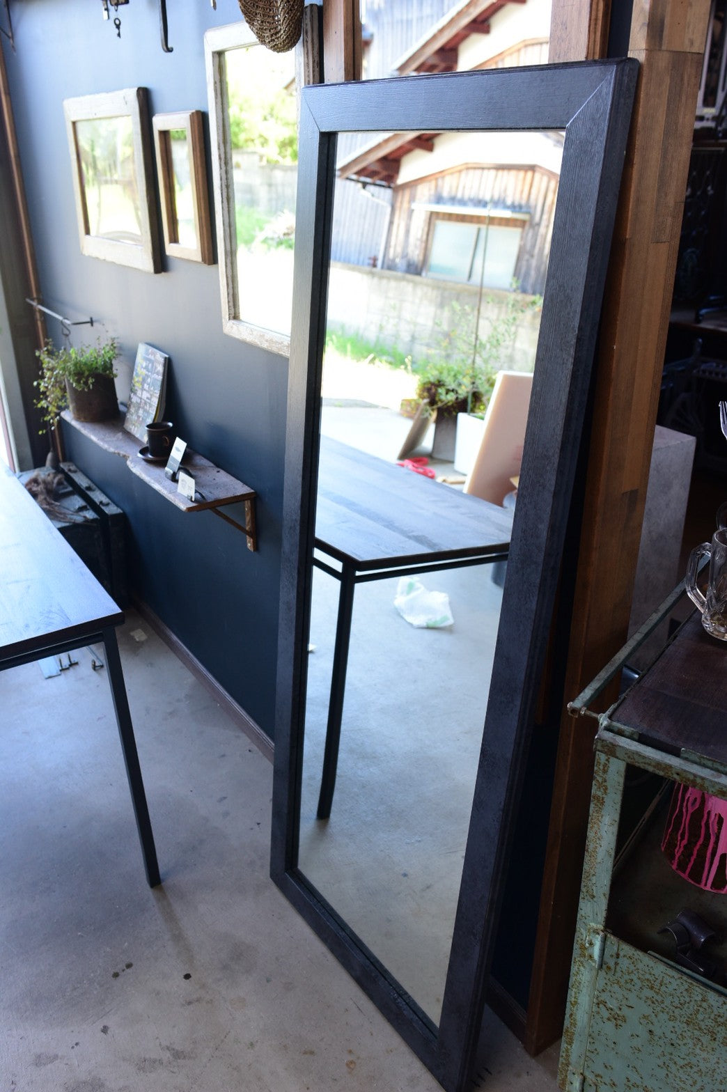 都会のインテリアに合う姿見/black & grayフレームミラー
