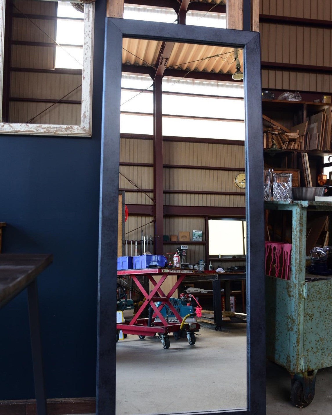 - black & grayのミックス塗装のフレームに仕上げたミラーです。