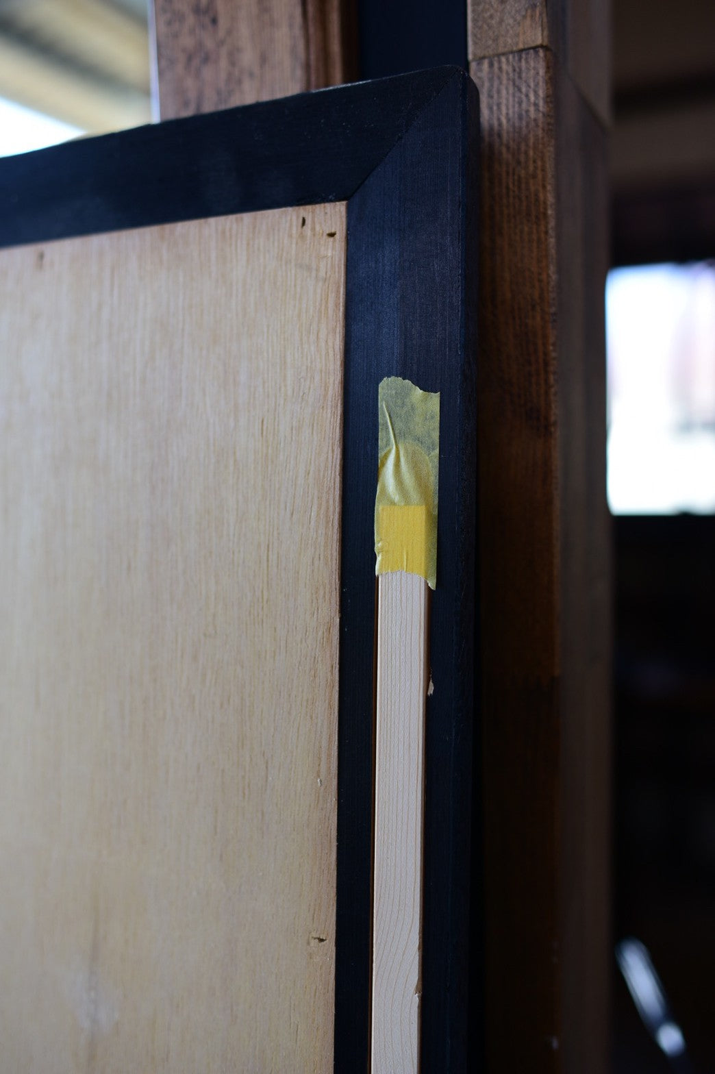 ①壁に固定する・・・固定用の木を仕込みます。