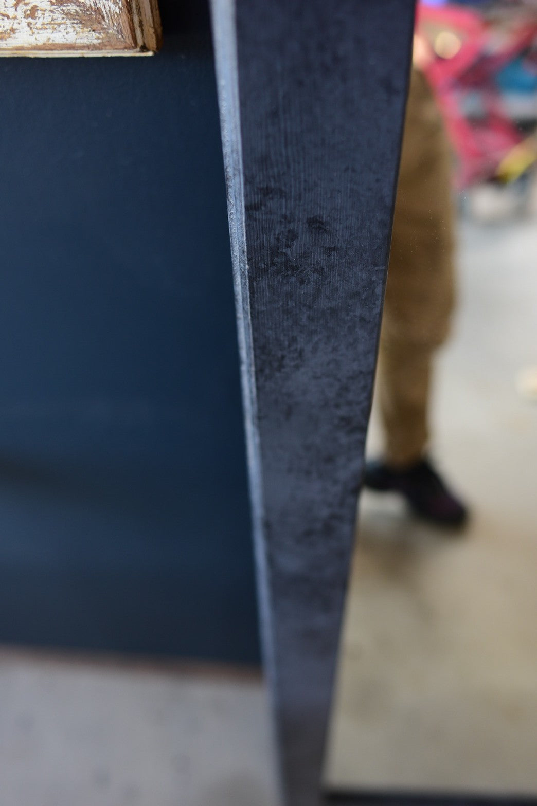 blackが潜むように塗装することで、暗くなり過ぎず、coolな大人のセンスを感じさせます。 フレームのコーナーはアンティーク家具によくみられる装飾トリミングを施し、高級感も盛り込んでいます。