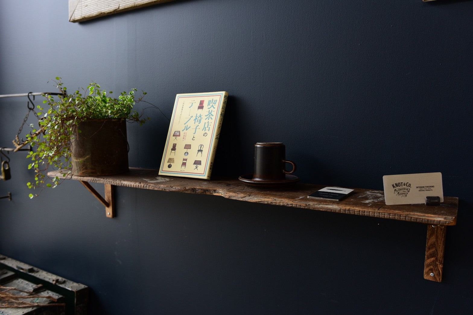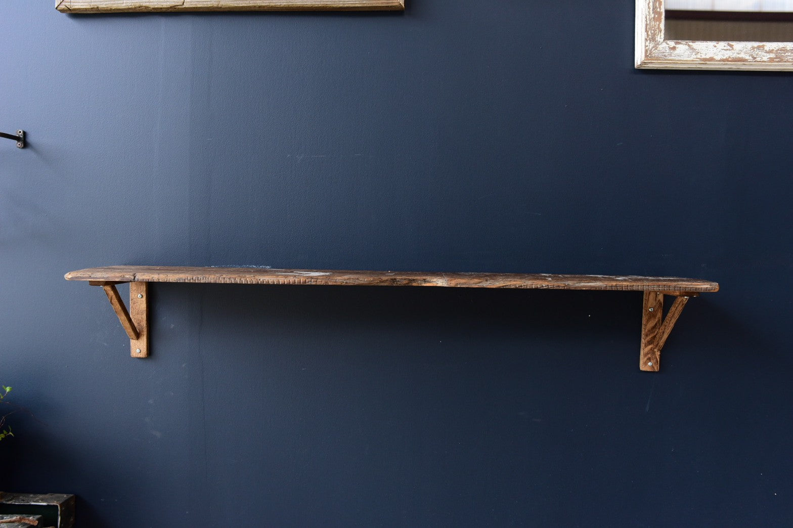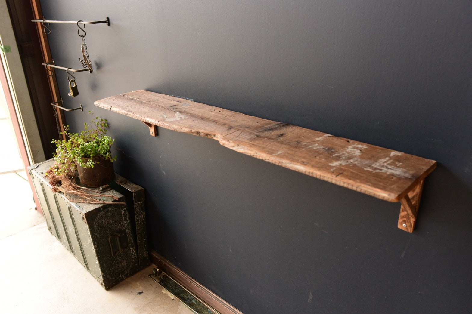 古材のウォールシェルフです。板は、足場古材を使用しております。塗料は塗らず、