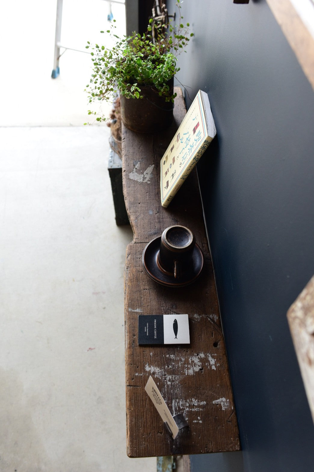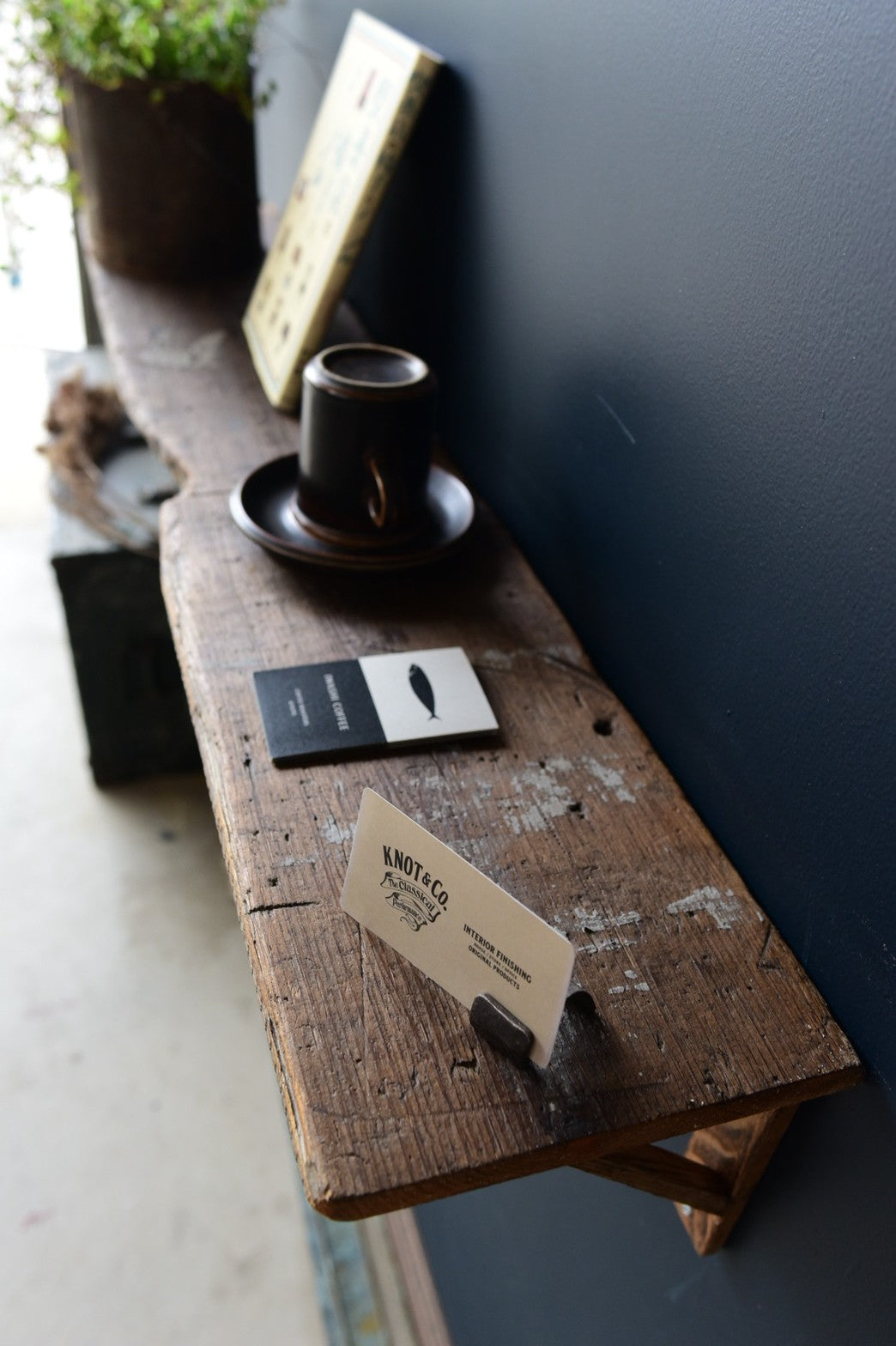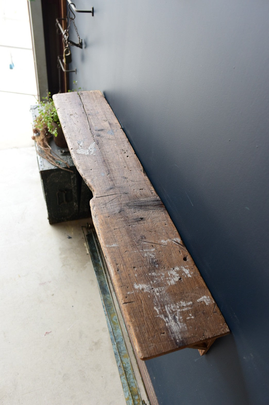 古材のウォールシェルフです。板は、足場古材を使用しております。塗料は塗らず、
